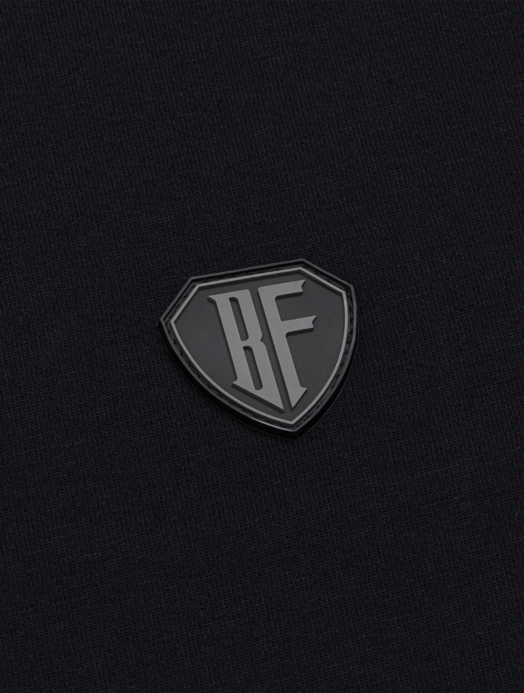 Minimalistyczne, ale charakterystyczne zdobienie: silikonowa tarcza z logiem BF na lewej piersi – dyskretna forma wyrazu przynależności do Ferajny.