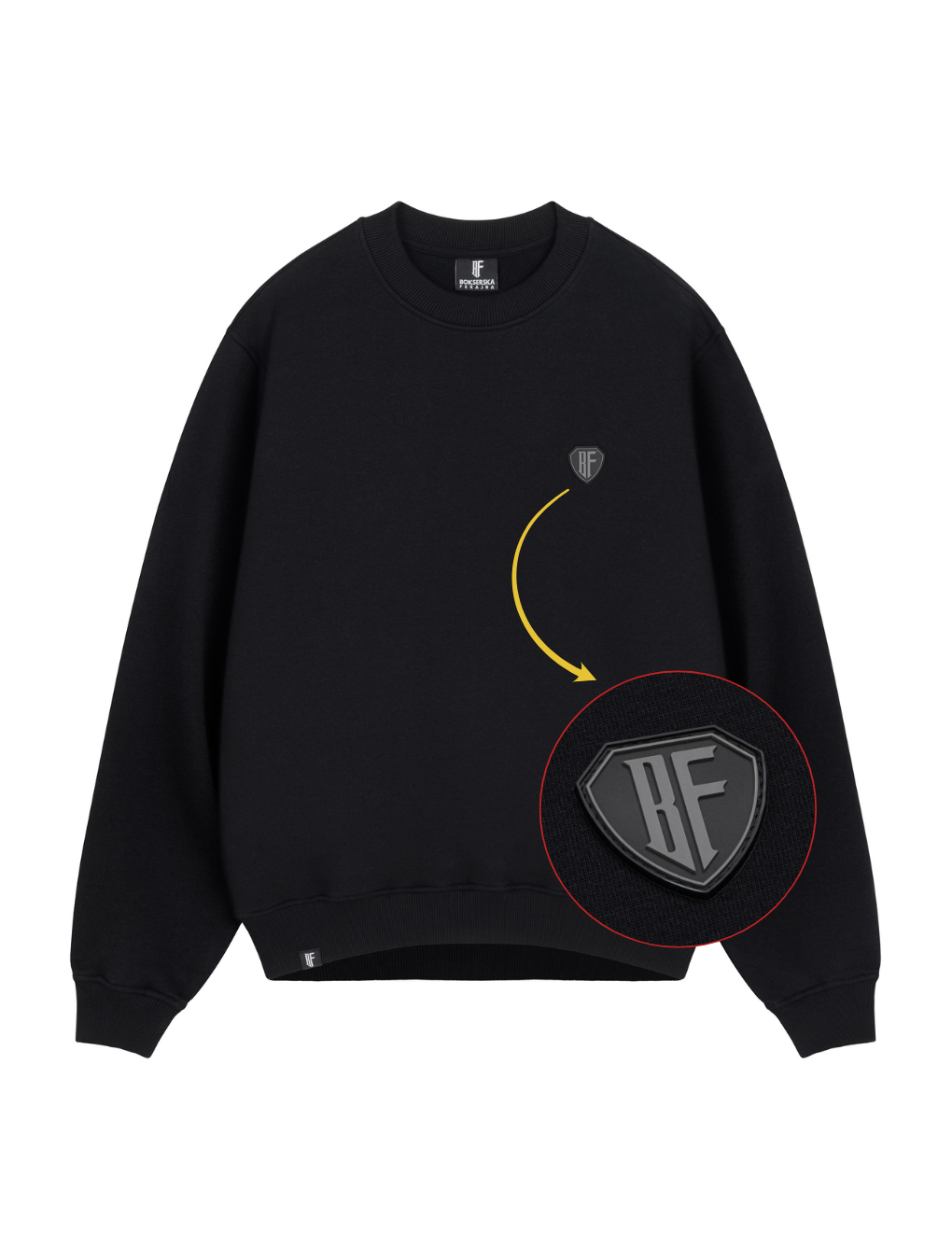Klasyczna bluza bez kaptura w wersji Bokserskiej Ferajny. Wykonana z wysokiej jakości materiału (280 gsm) – 90% bawełna, 10% poliester – zapewnia komfort, trwałość i swobodę ruchu.